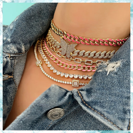 Tania Mini Hearts Rainbow 0.2Ct Tennis Necklace